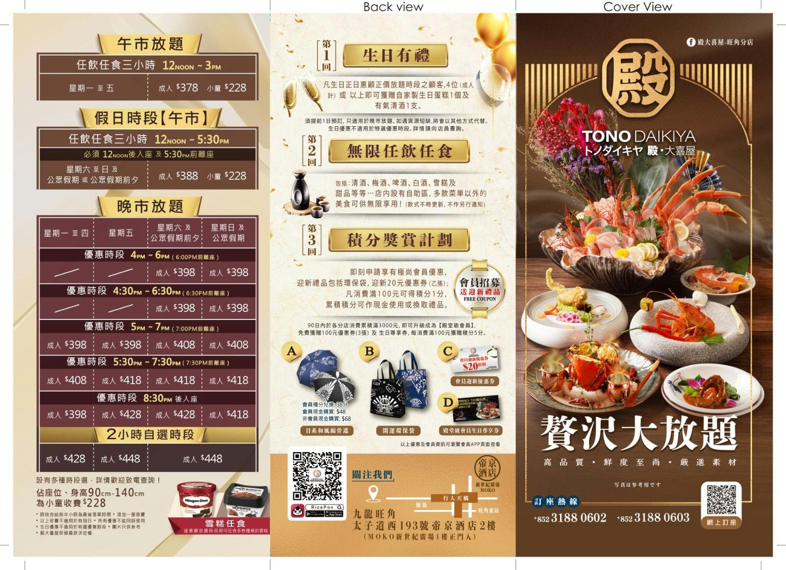 殿大喜屋 TONO DAIKIYA 尖沙咀inline 訂位菜單參考