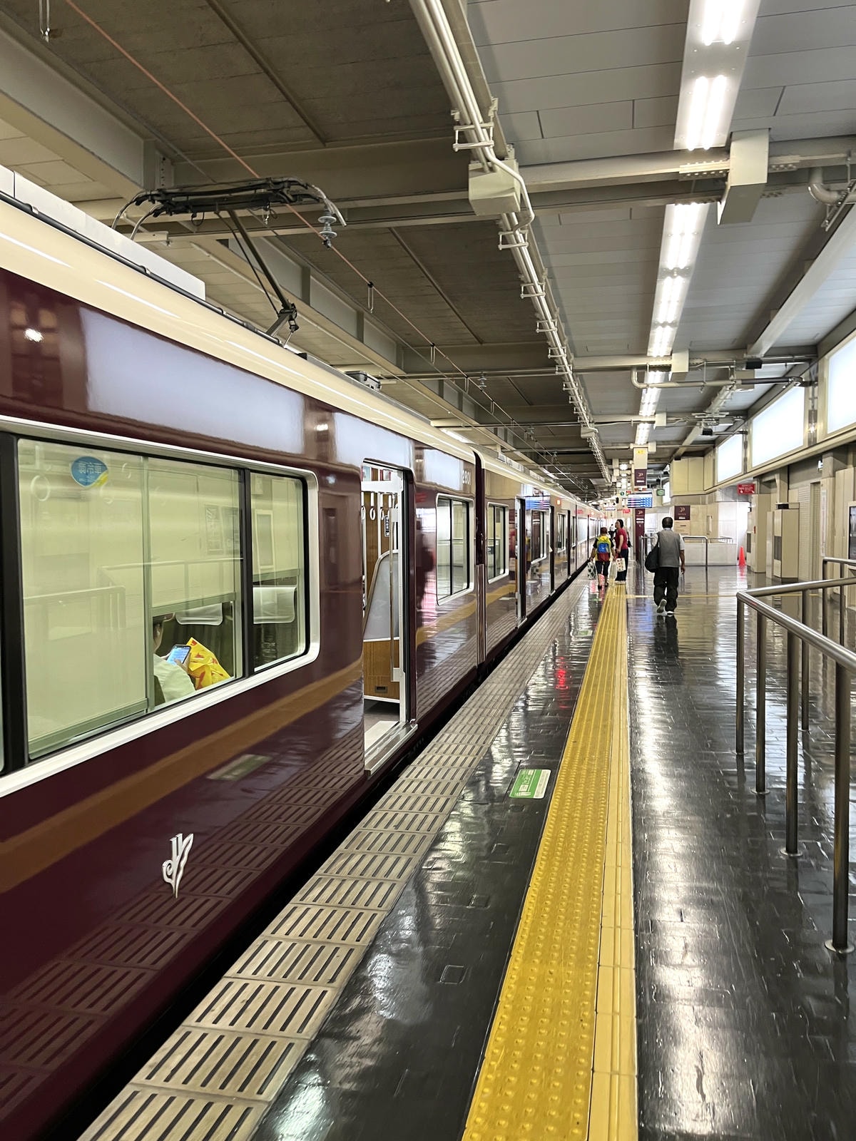 然後可以從地鐵站直接搭車到達阪急電鐵的淡路站月臺