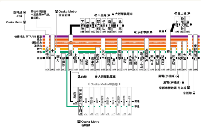 也可以從南海電鐵的天下茶屋站, 轉乘直通運行班次前往京都