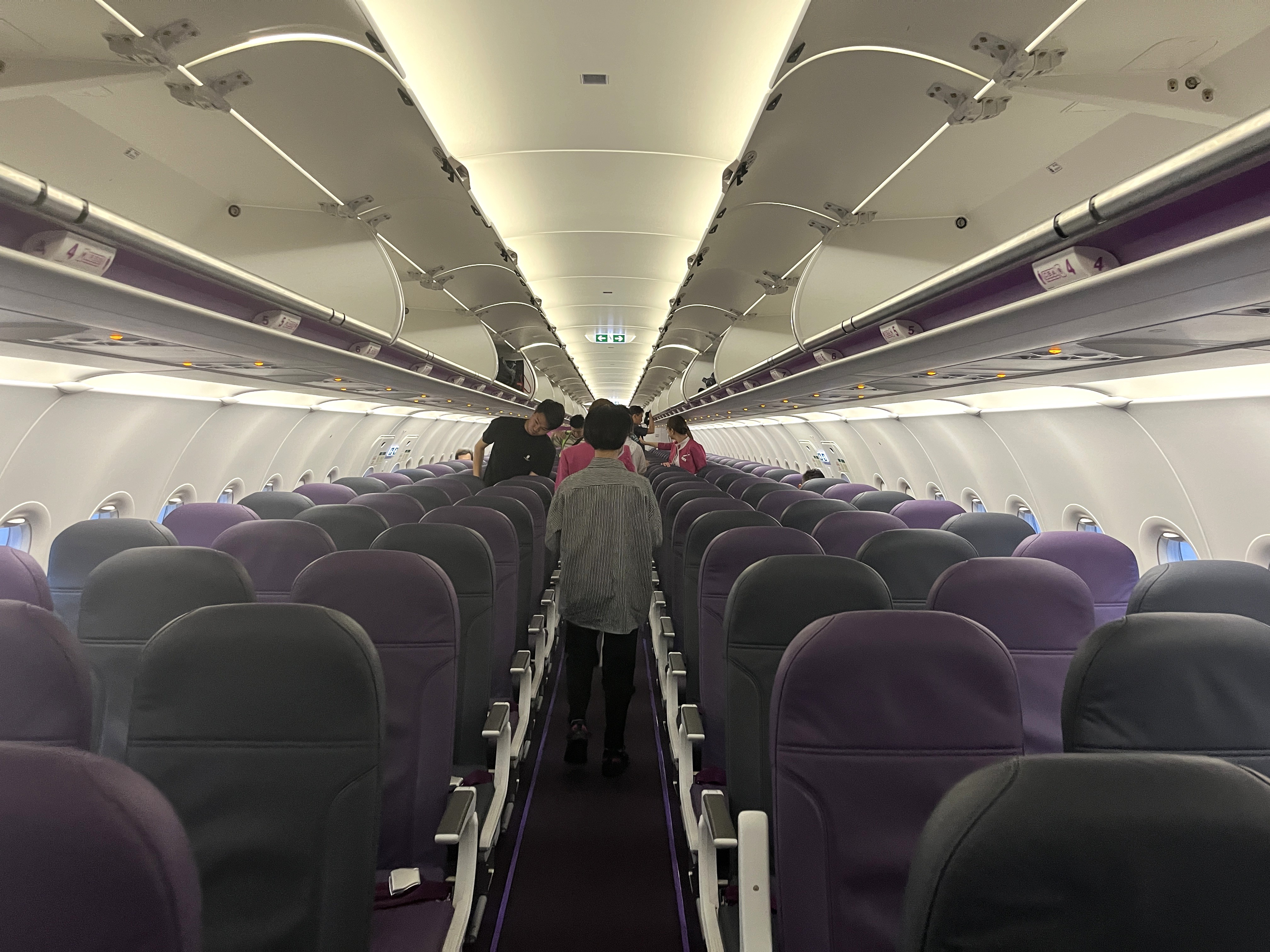 可以看到虎航A320是使用傳統座位 , 寬度18英寸