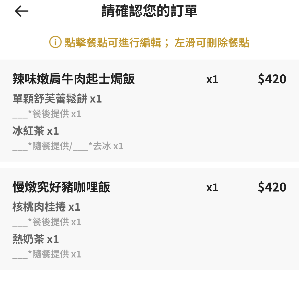 入座時都提供完整的餐具,