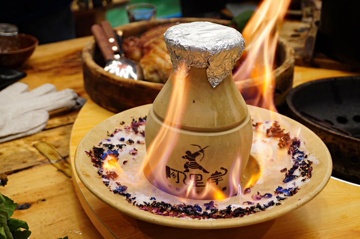 燒瓶子的人份羊肉爐, 上桌時淋上酒精超浮誇