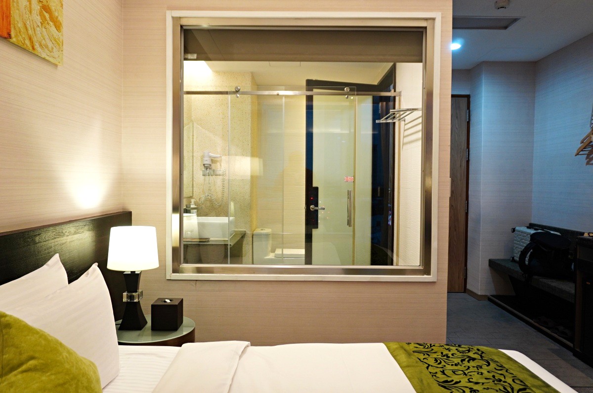 這次剛好坐到高樓層的轉角房,